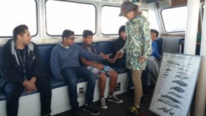 On Saturday April 1st, over 70 of our students and families went aboard the R/V Sea Explorer at the Ocean Institute. The Ocean Institute provided two cruises to accommodate all of our participants. The first cruise left at 9:30 in the morning. We had the honor of having Dan Stetson, Executive Director of The Nicholas Endowment, on board the first cruise. Breakthrough had the opportunity to see two gray whales, a pod of dolphins, sea lions, and a variety of birds on the morning cruise. The second cruise left at noon. The students and families on the afternoon cruise got the rare treat of seeing a humpback whale! On top of encountering various marine mammals, we received hands-on experience in taking and viewing specimens from the ocean floor. The Ocean Institute staff also gave participants a deeper understanding of whales and dolphins, which included allowing them to touch a real baleen.